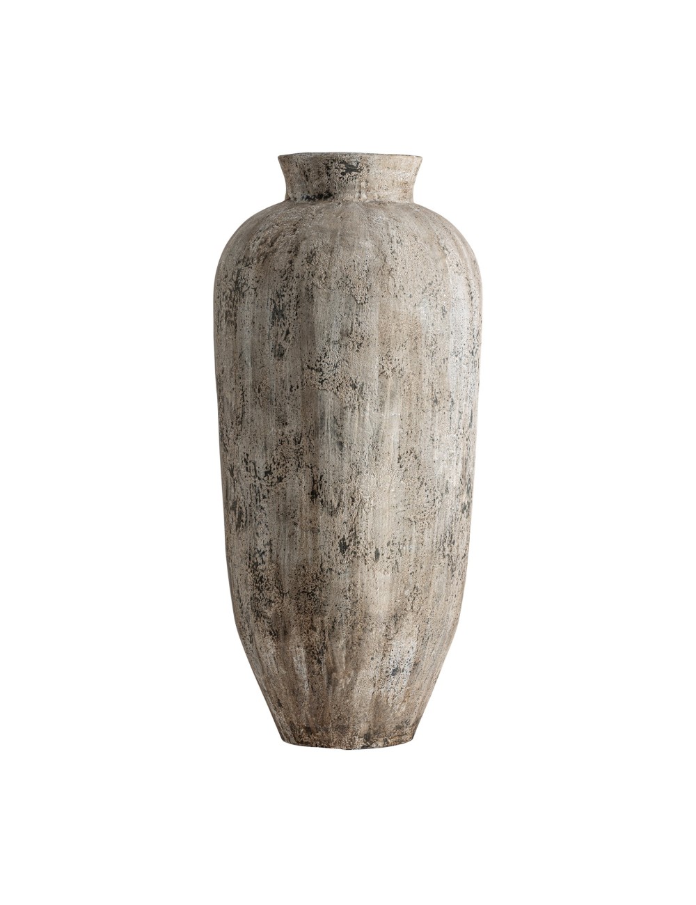 Tinaja Milaene de estilo clásico fabricado en hormigón armado en color gris con acabado envejecido.