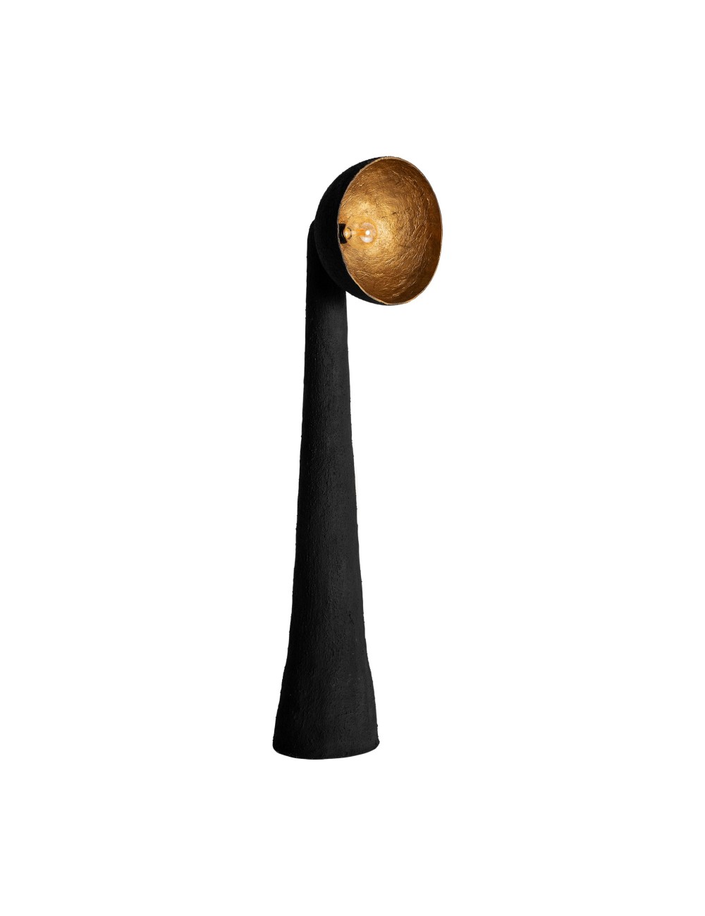 Lámpara de pie Lierop de estilo contemporáneo fabricado en resina en color negro combinado con metal en color oro.