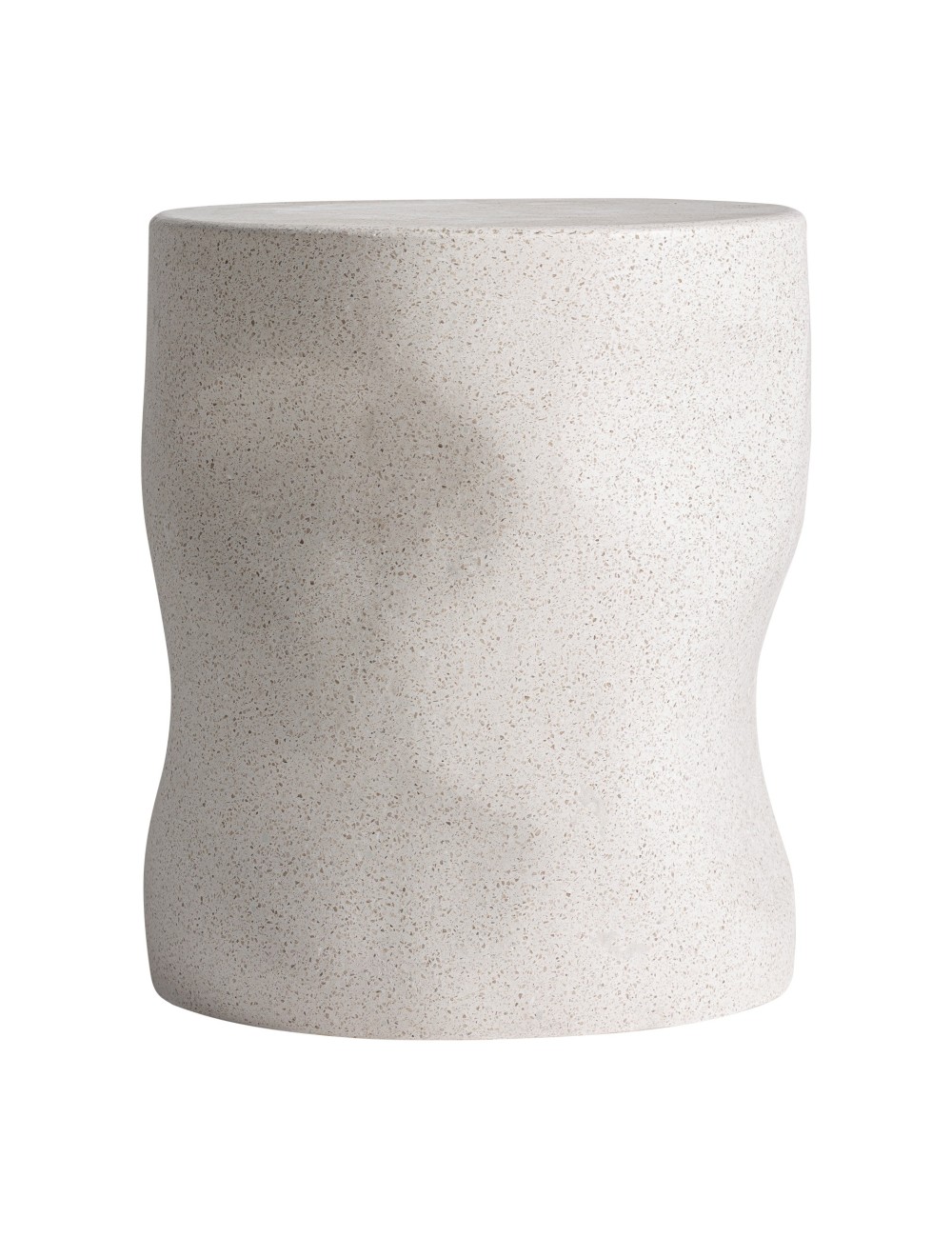 Mesa auxiliar Derath de estilo contemporáneo fabricado en terrazo en color blanco roto.